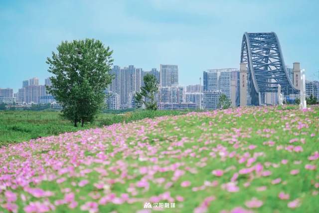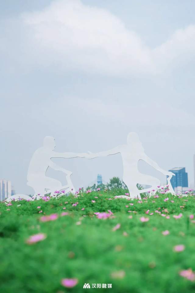 相比去年,今年的花海更高级了,汉江湾桥下波斯菊盛开,巨型四叶草雕塑清新曼妙,主题景观“偏偏喜欢你”,以花之名,记录浪漫。