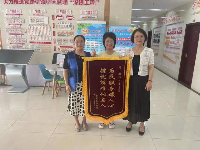 “感谢社区为我家解决了糟心事、堵心事,真是多亏你们了!”在社区网格员、楼栋党小组长及物业、业委会工作人员的共同努力下,一直困扰汉阳区潮江社区太子湖畔星苑小区11栋居民黄峥—家的卫生间漏水问题终于得到了妥善解决,让这个特殊的家庭松了一口气。黄峥欣喜不已,为表达对社区的谢意,专程送来写有“排忧解难似亲人 为民服务暖人心”的锦旗。