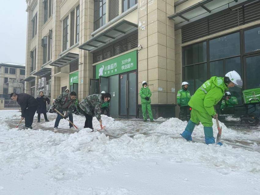 “真的是很感谢社区的工作人员来帮我们,下雪订单量本来就大,这雪要是不铲,我们电动车根本就开不出去,更不谈跟居民送生活物资了”小象超市负责人杨志勇说道。