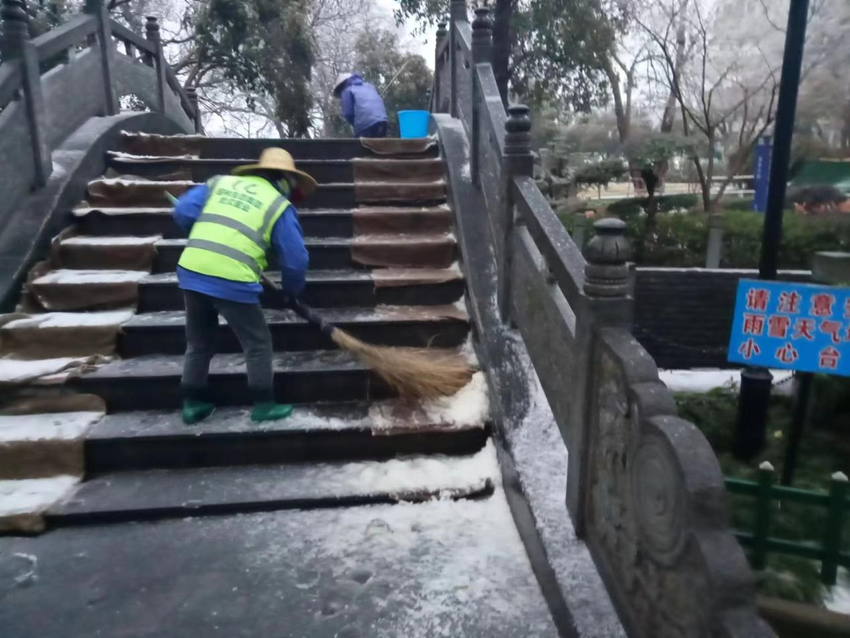 汉阳区莲花湖公园相关负责人表示,对管辖范围内易结冰路段公园明确扫雪除冰职责到每个人,并实行24小时值班值守制,随时调度、随时出动,确保一旦发生雪情,以最快时间及时排查、高效处置,最大限度保障市民出行安全。