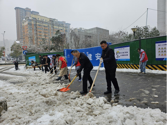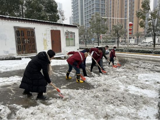 2月4日清晨,汉阳区五麒里社区组织辖区企业武汉铁路地产置业有限公司党委、汉阳区疾病预防控制中心党支部等多方力量,在社区各主次干道开展除冰铲雪行动。