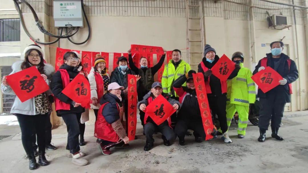 社区工作人员与志愿者接过这份暖心的礼物,将一张张“福”字、一句句祝福送到了社区空巢、独居老人家中。