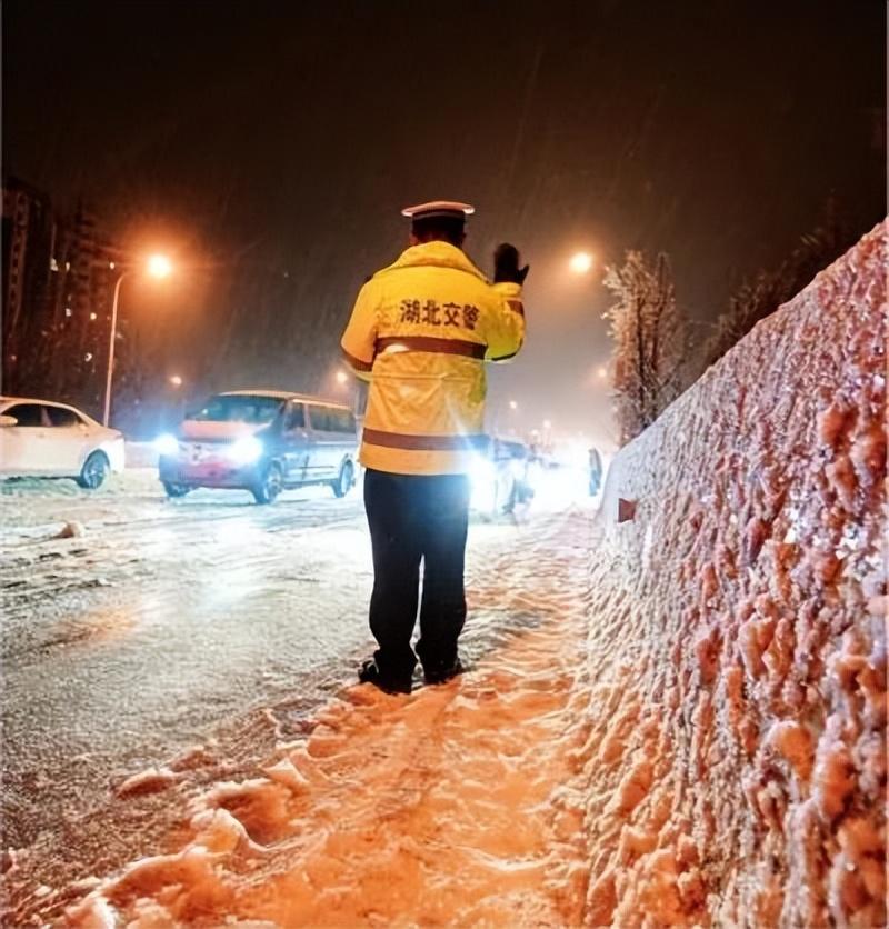 △2月4日凌晨,月湖桥汉阳上桥路段,交警引导车辆通行。(长江日报记者史伟 摄)