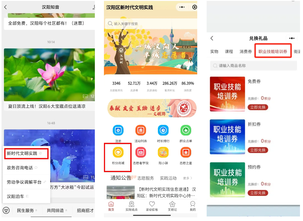 △职业技能培训券适用于辖区市场化职业技能培训、定点机构就业创业培训和青年夜校课程等培训项目。可在微信小程序“汉阳区新时代文明实践”上领取(可由“汉阳知音”微信公众号菜单栏“民生服务通道”进入)。