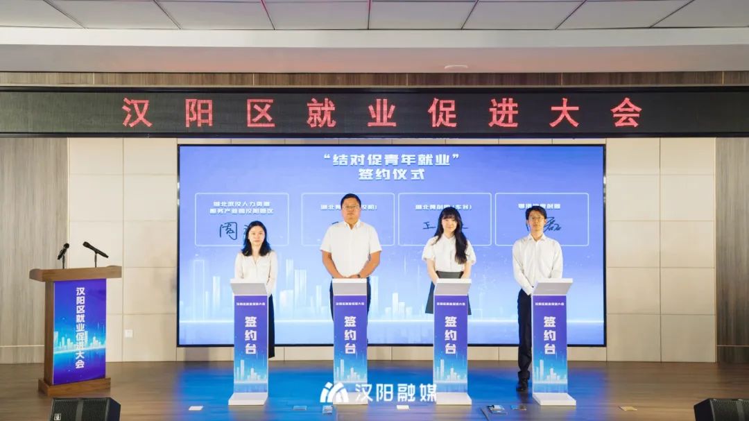 △汉阳区就业促进大会现场,“结对促进青年就业”合作签约。