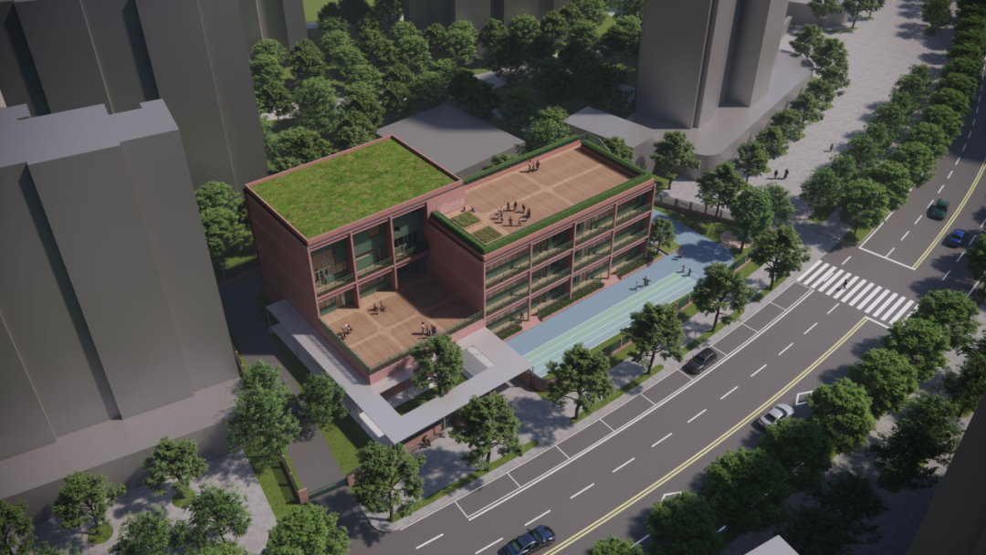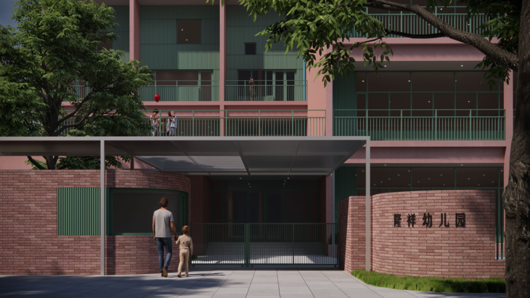 孩子们需要一个什么样的幼儿园?该设计方案整体采用砖红色,在建筑南侧置入阳台空间,结合种植绿化,打造亲近自然的幼儿园氛围。东侧沿道路布置幼儿活动用房,最大化采光面。西侧布置辅助用房,靠近道路位置布置办公与接待大厅,便于幼儿上下学。