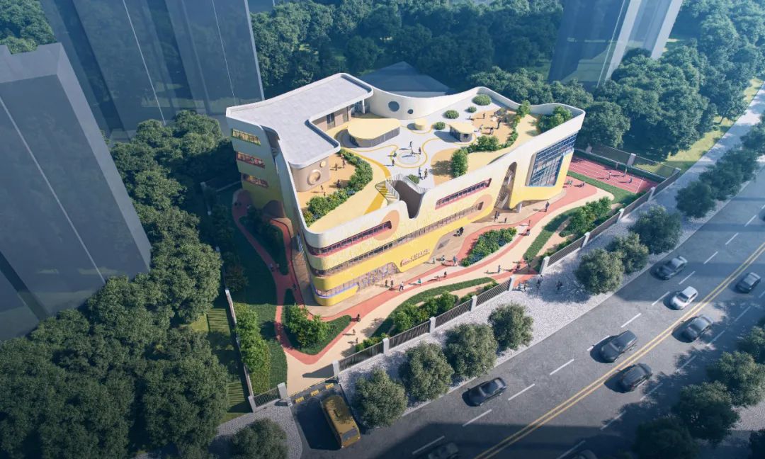 什么才是适合小朋友快乐成长的空间?该设计方案利用多层次的立体绿化带来充满自然的空间;通过浅进深大面宽的教室布局带来充足采光且干净明亮的空间;充分利用下沉平台和屋顶空间串联打造开放自由、探索的童趣空间。