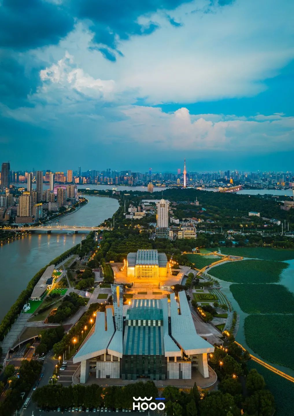 从月湖畔把视角拉远,一山、一湖、一园、一阁,龟山携月湖重演高山流水,晴川阁望古琴台诉知音佳话,这里就是知音文化旅游区。