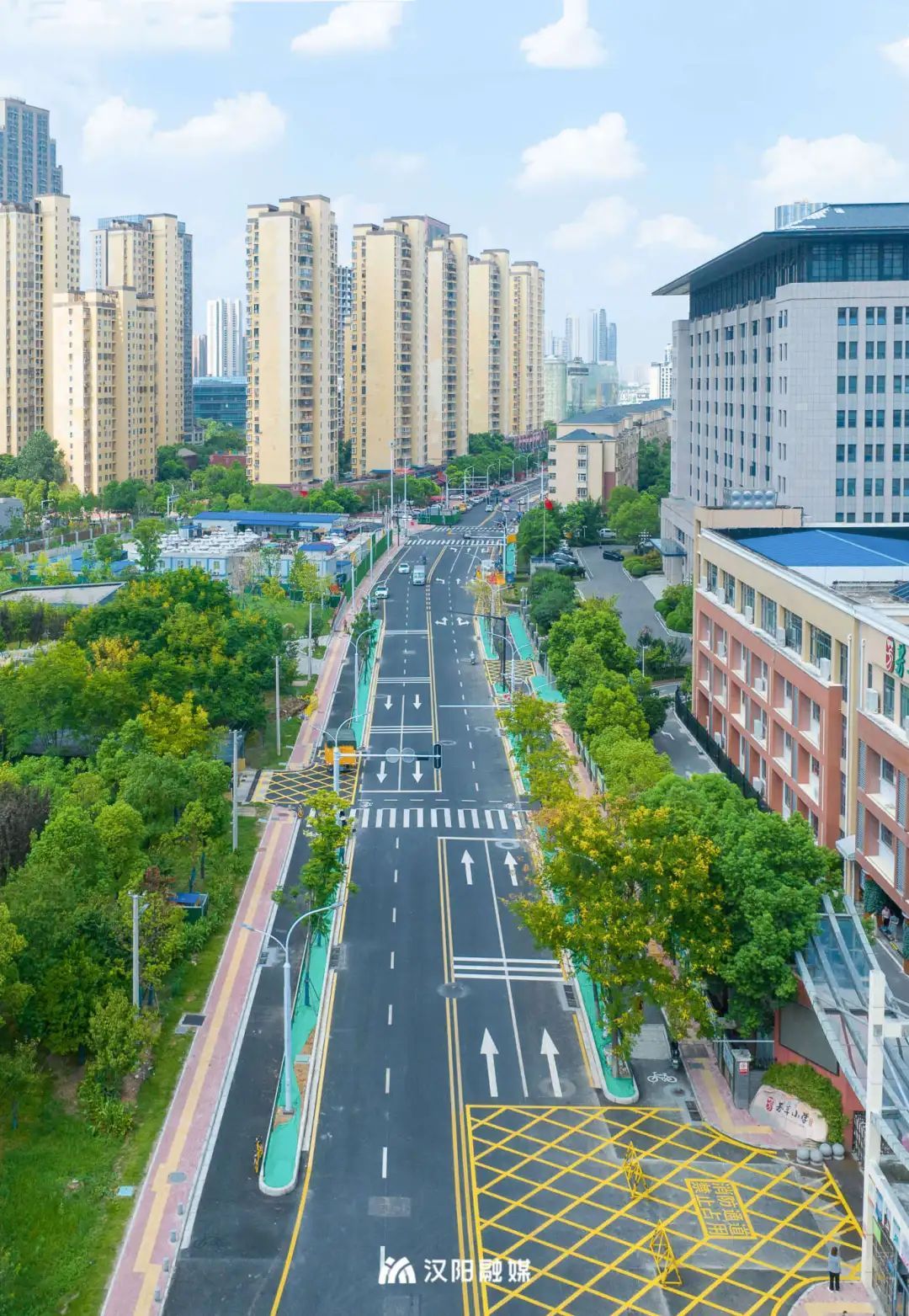 ”近日,汉阳区四新北路(汉城路~芳草路)道路于开学前完成拓宽升级,从原来的双向两车道变为双向四车道,直抵龙阳大道,极大的改善周边交通出行。