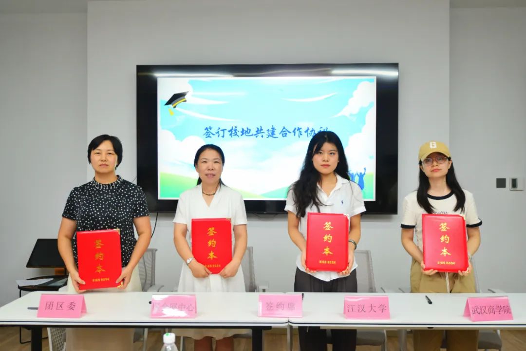 △江汉大学设计学院、武汉商学院与团区委、区会展中心签订校地共建合作协议。