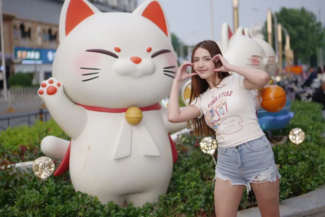 △汉商自主IP汉商猫,位于汉商银座外广场的花坛。