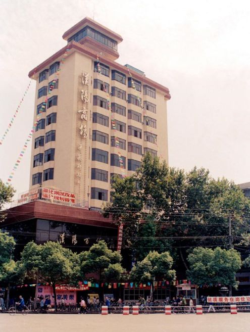 1985年,武汉百货公司对汉阳百货商场进行了大规模的升级改造,建成了12层的商业主楼,零售百货业态的营业面积也增大到了8600平方米。这一年,汉阳百货商场和同在这个十字路口的祁万顺、野味香酒楼,和平菜场、汉阳副食品商店、青松照相馆等商户一道,彻底打响了钟家村商圈的名号。作为龙头的汉阳百货商场进军武汉百货业排名前三。