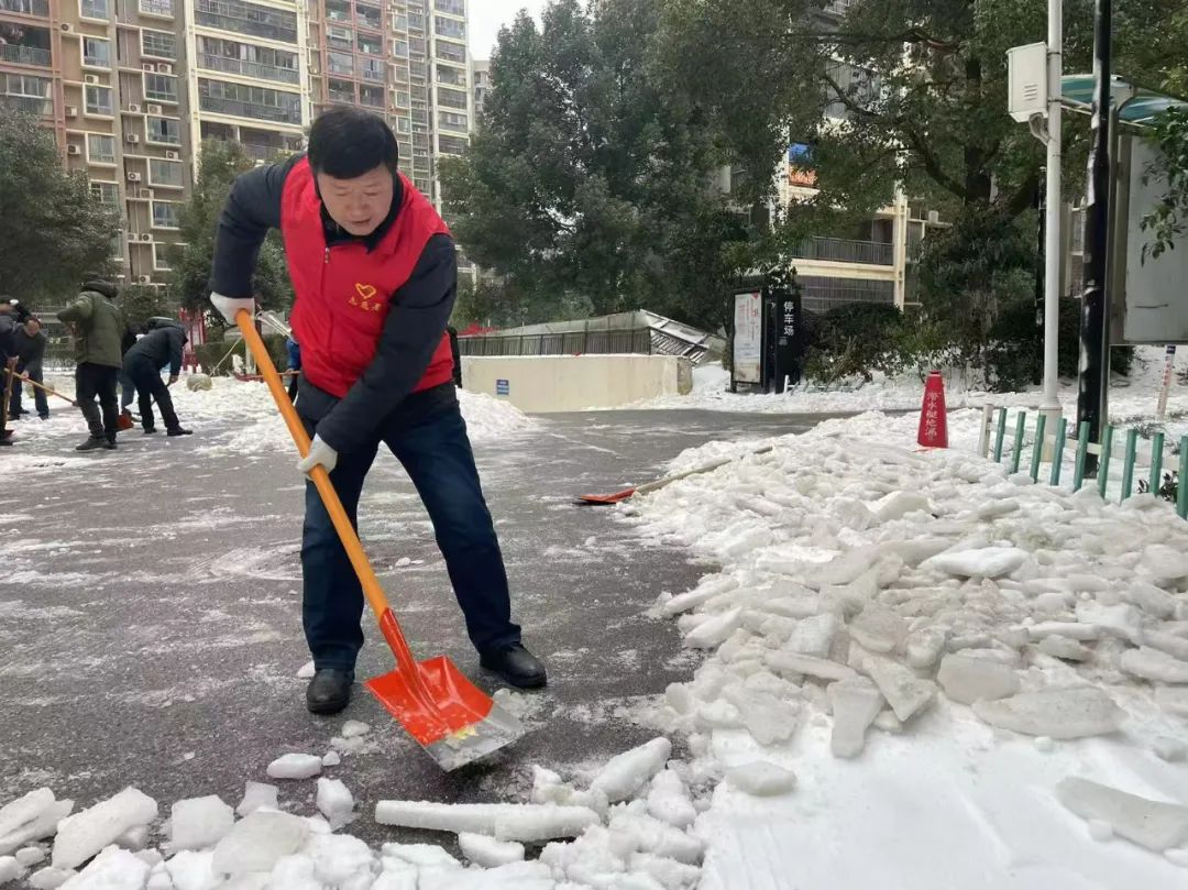 △年初雨雪天气,退役军人组成志愿服务队主动参与融雪除冰工作。
