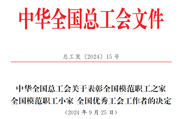 近日,中华全国总工会印发表彰文件