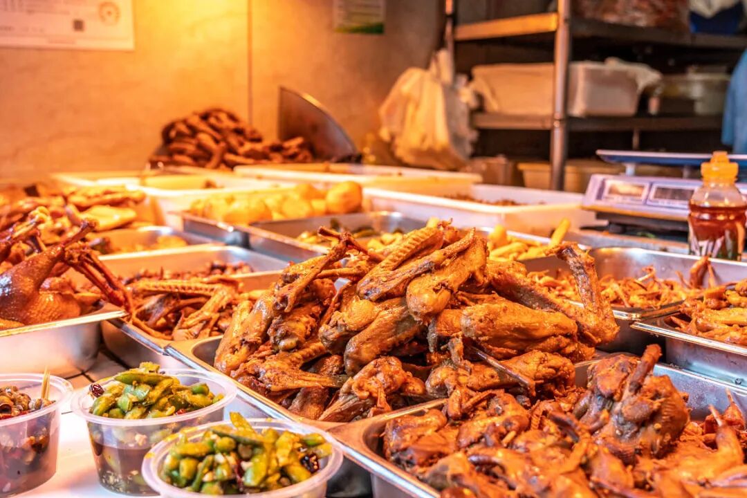 武汉黄毛鸭脖千千万,但玫瑰街的这家才是正儿八经的“鼻祖”,做了十几年,是郭茨口一带有名的“卤菜大王”。不到10㎡的店面,有一大半的面积被各色卤味占满。鸭脖、鸭翅、鸭肠、腐竹、土豆……十几种卤味干净的放在盘子里,泛着亮红的油光,勾得人只想点餐。