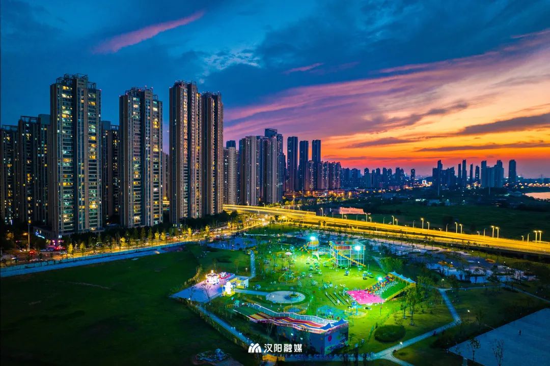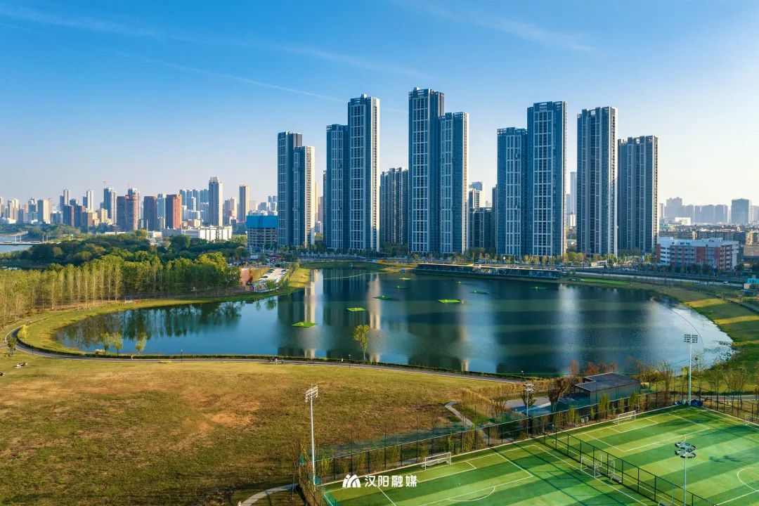 △汉水玫瑰乐园一期,建有无动力儿童园和武汉滨江最美夕阳足球场等。