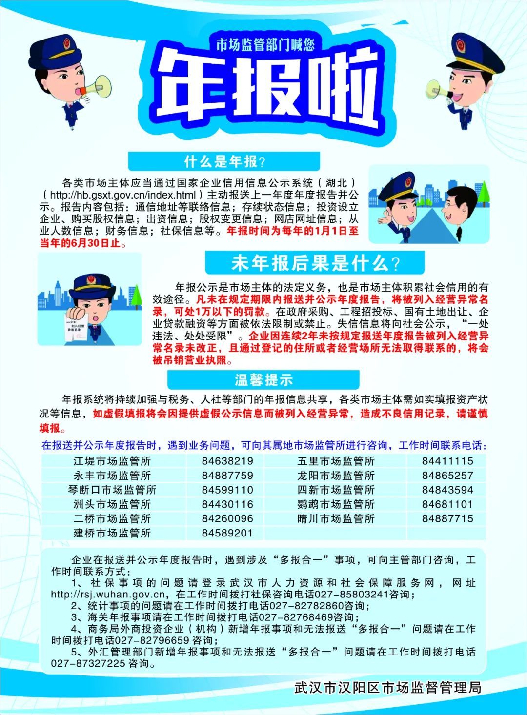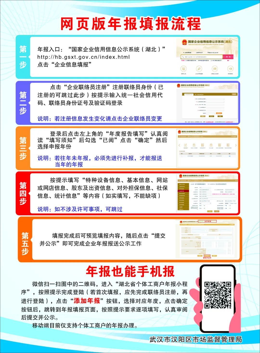 凡2024年12月31日前,在汉阳区登记注册的企业及其分支机构、农民专业合作社、个体工商户,都必须履行年报义务。