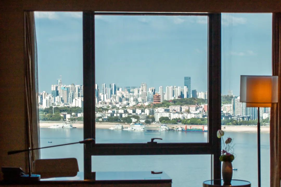 白天,凭栏远眺江水奔流不息;夜晚,落地窗前欣赏对岸灯光秀。静享江畔吹来的秋风,疲惫尽消。