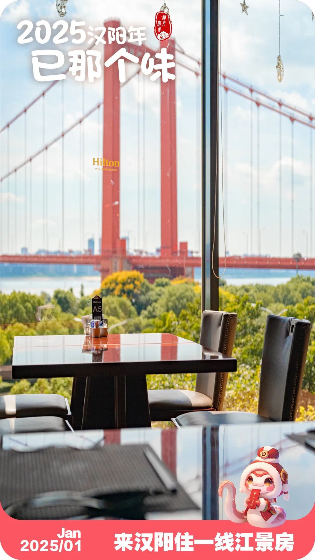 汉阳君特别整理了汉阳4家一线江景酒店,就在春晚武汉会场黄鹤楼主舞台对岸。白天,放眼展望270度无敌江景,夜晚,站落地窗前观赏对岸灯光秀,让武汉给你的第一印象就是绝美。