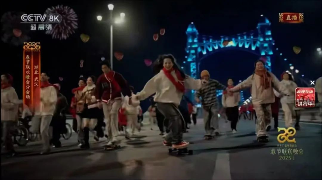 除夕之夜,武汉亮相央视春晚,7分钟惊艳全世界观众。演员朱一龙、李现、徐帆领队奔跑的画面让人热血沸腾。其中,一群活力四射的年轻人恣意穿越古田桥,一抹普鲁士蓝色在夜空中让人回味无穷。