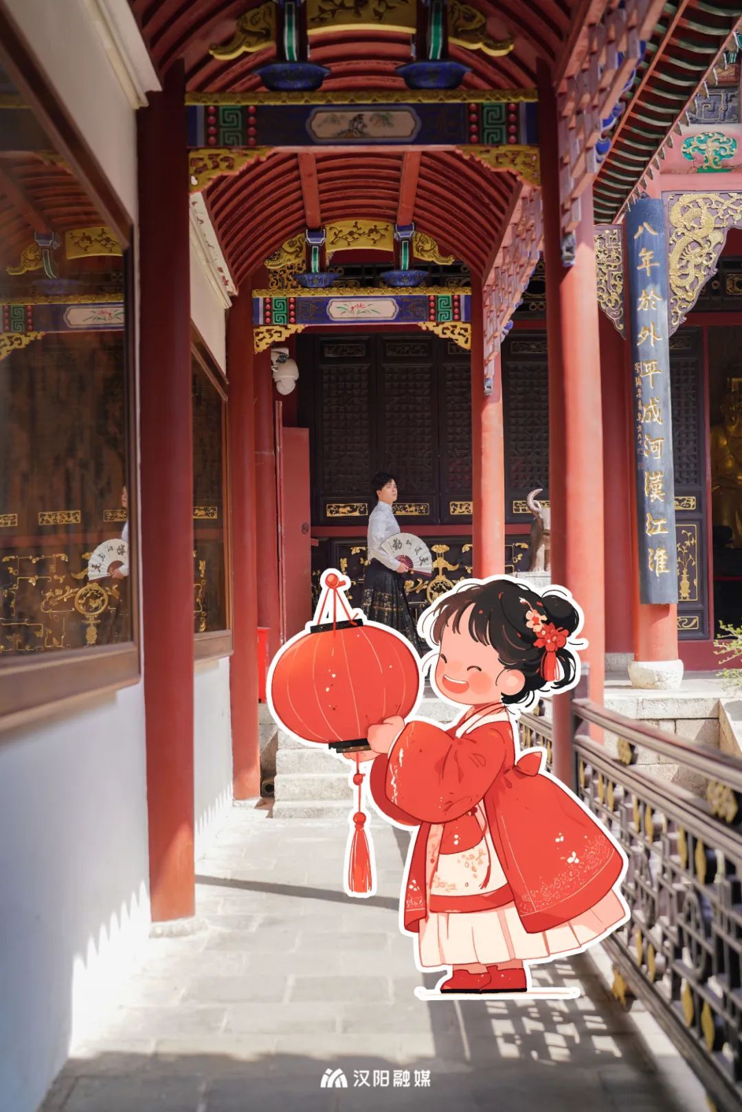 说到红墙,「晴川阁」一定要有姓名。春节期间,夜游晴川阁、“诗韵月色”大禹文化周非遗市集、“华彩霓裳,古韵新春”晴川阁新春汉服等活动,让你推开时间穿梭的门,做一场穿越古今的梦。