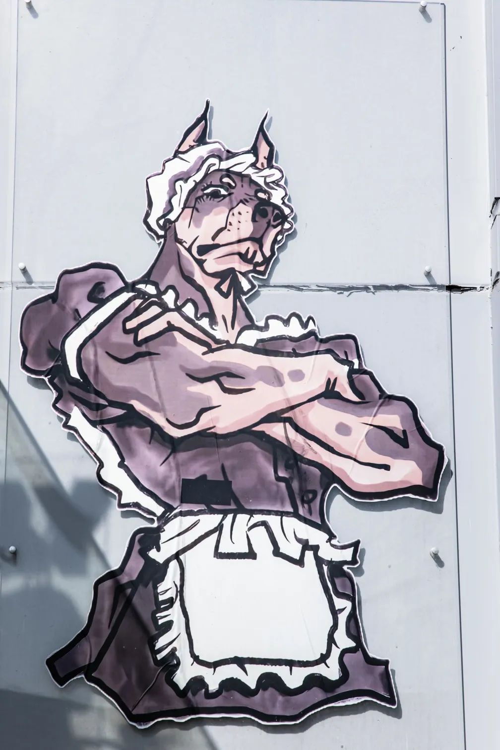 DOGGY COFFEE店里有一条名为“米修”的杜宾狗,它绅士优雅,性情温和,咖啡馆外墙上还有为他专门定制的“女仆装”形象照。