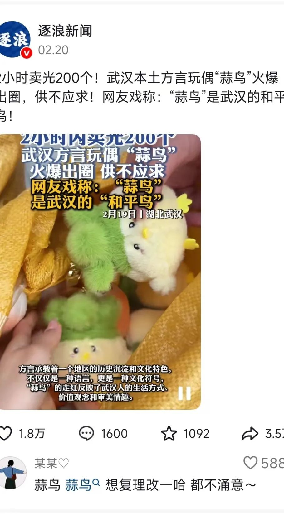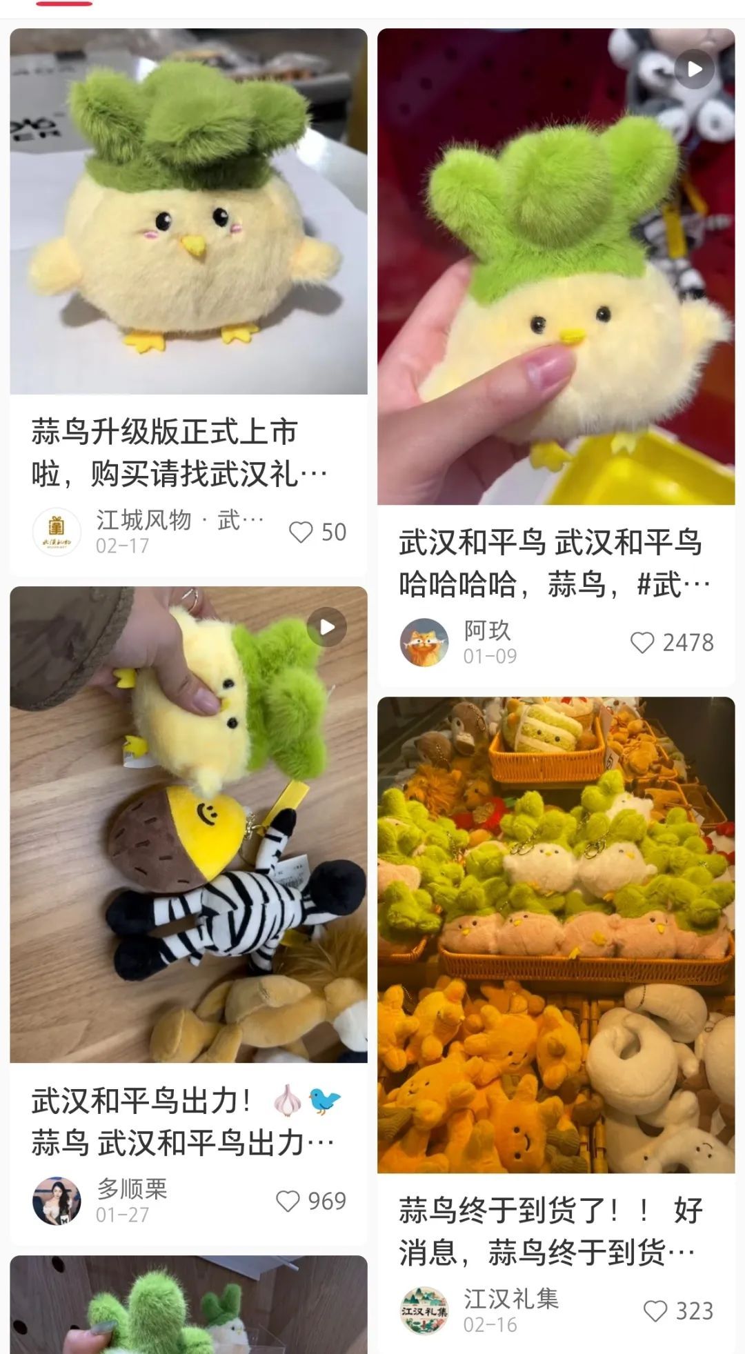 “蒜鸟”在年前被推向市场,刚一上市就被抢购一空。网友们甚至在小红书上自发分享“抢鸟攻略”,有人专门从市区赶到天河机场武汉礼物店,只为买到一只“蒜鸟”。“‘蒜鸟’的火爆程度超出了我们的预期,线下门店刚到货200件,2小时内就卖光了。”武汉礼物总经理杨博智介绍,现在武汉礼物已经开通了预售渠道,大家可以关注其官方小红书账号获取最新信息。
