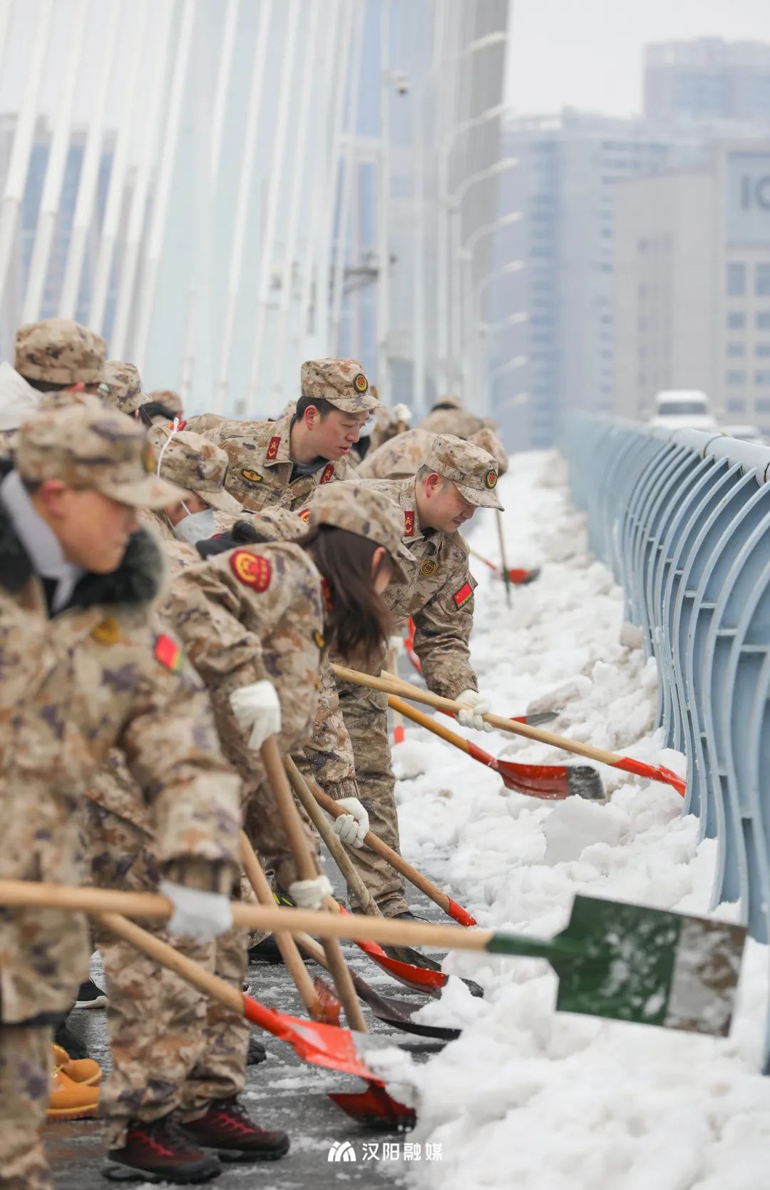 △2024年2月,汉阳区基干民兵闻令而动,清扫月湖桥引桥区域。
