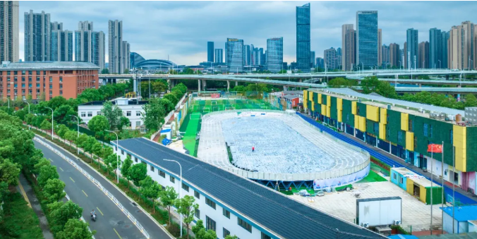 杨泗港国博大道立交桥下,曾经的荒废“边角料”摇身一变,成为湖北省首座冰雪轮滑主题公园——向阳冰雪轮体育公园。樱花粉与海洋蓝配色的桥墩、国际标准滑板场、森林篮球场与小轮车泵道,让1.7万平方米的桥下空间充盈着青春活力。市民王女士感叹:“带孩子来玩,既能运动又能打卡,桥下‘冷角落’成了‘热地标’。”