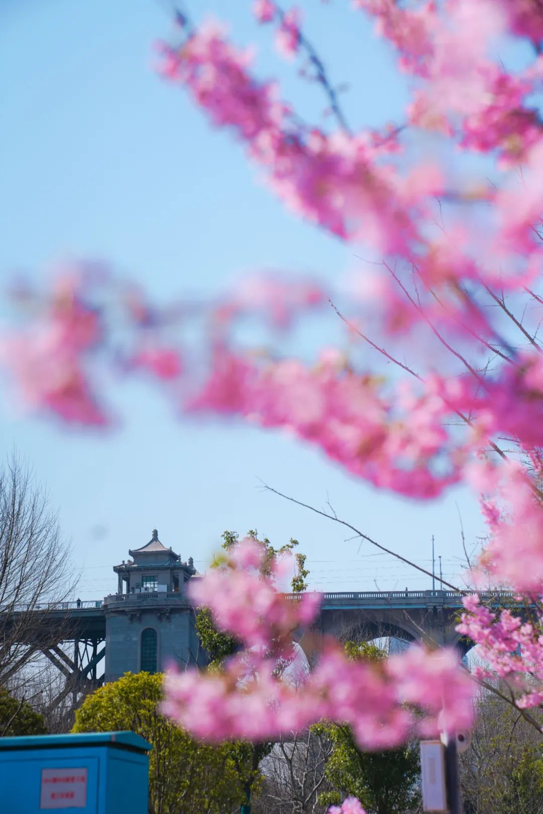 ▍樱花与武汉长江大桥同框,摄于2025年3月。
