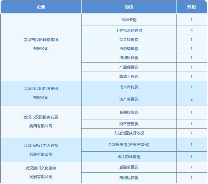 汉阳区属五大国企再次招聘20名管培生