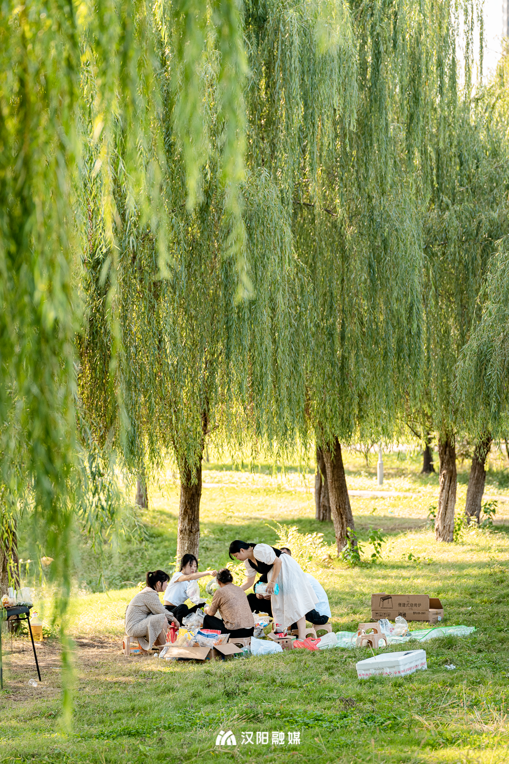 汉江畔的汉水公园,也是一个极佳的免费露营点。公园虽然不大,但有一整片的草地,一眼望去,绿油油的叶片在大地之上交错,织成一片软绵的草毯。
