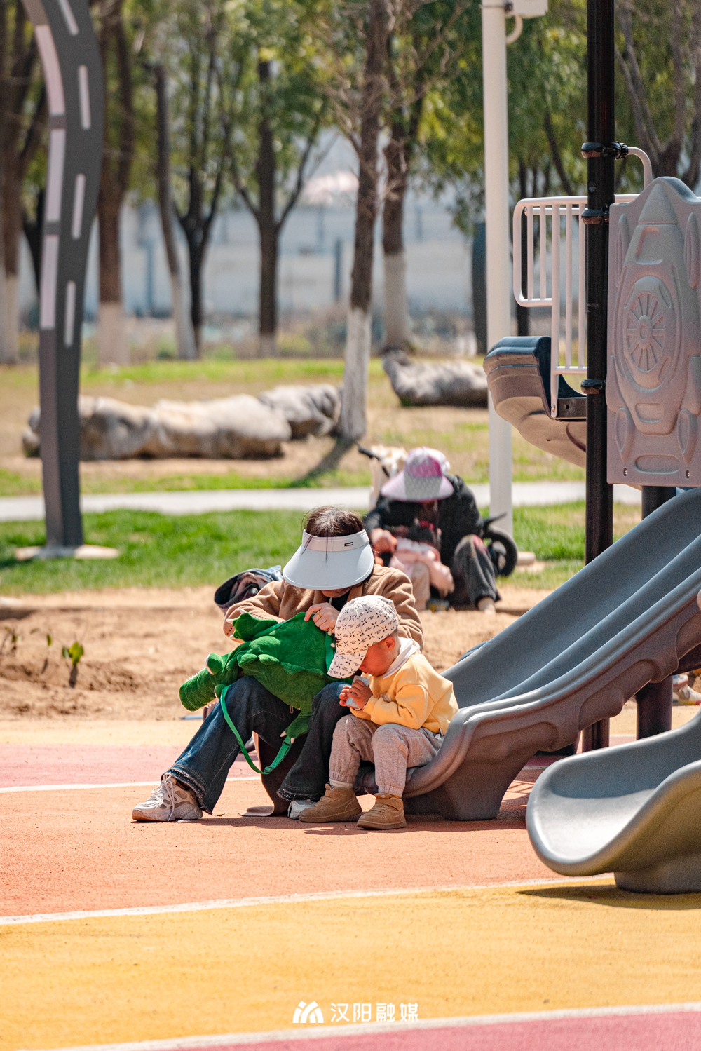 公园二期新增了儿童活动场所,布置有滑滑梯、沙坑、攀爬架、健身器材等设施,孩子们可以在这里尽情撒欢、肆意奔跑。
