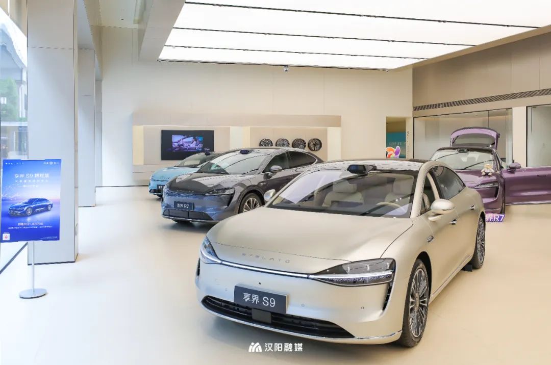 汉阳君走进体验中心看到,空间设计科技感十足,多款车辆整齐排列展示。其中,享界S9作为店内唯一的旗舰型车型,该车型全系标配鸿蒙智驾全套感知配件及软件系统,人气较高。