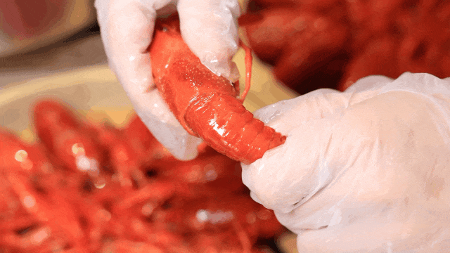 他们家的虾选用的是潜江清水虾,成熟得比较早,品质好,壳薄干净,且多选用个头大、黄多的母虾。