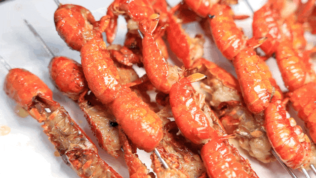 原味、蒜香、麻辣、香辣......各具特色,满足不同需求。虾壳焦脆,虾肉新鲜入味。有很多老顾客,一来就点大几十、几百串,口碑逐年积累了起来。