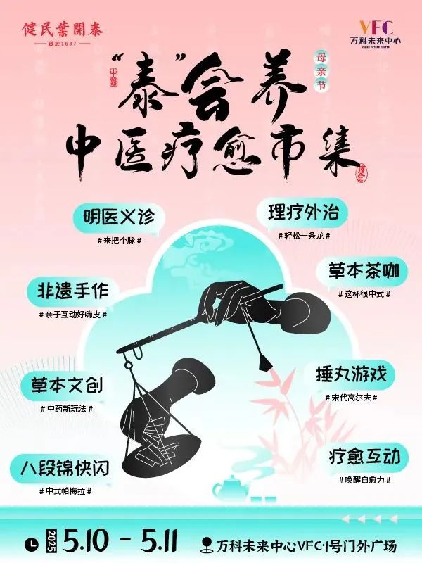活动现场将开设望闻问切馆、妙手回春铺、解忧万事屋、秘药局、好物集、泰会玩驿站等多个不同主题的养生摊位,吃喝玩乐逛,一键解锁“脆皮青年花式回血大法”。