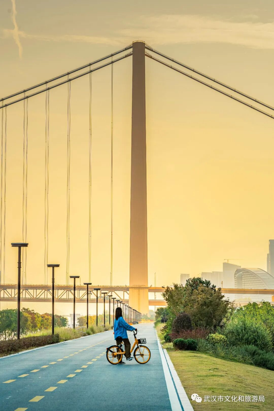 ▌杨泗港都市T台旁边的堤上,有一条超靓的蓝色骑行道(图@武汉市文化和旅游局)。