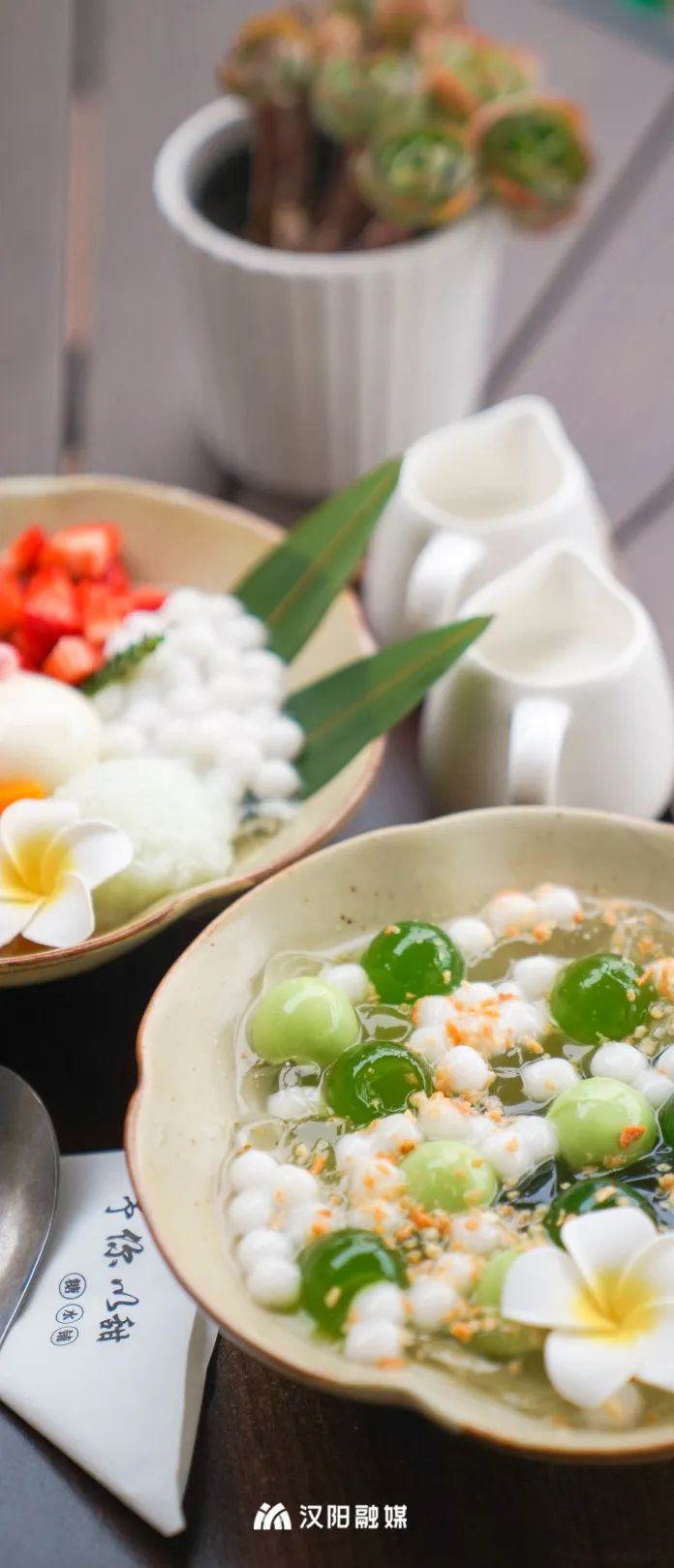 芋圆、红豆、斑斓、银耳、桂花冻……经过程芸的巧手操作,转眼功夫,一份颜值超高的糖水呈现在眼前,汉阳君直呼这简直是能吃的艺术品。