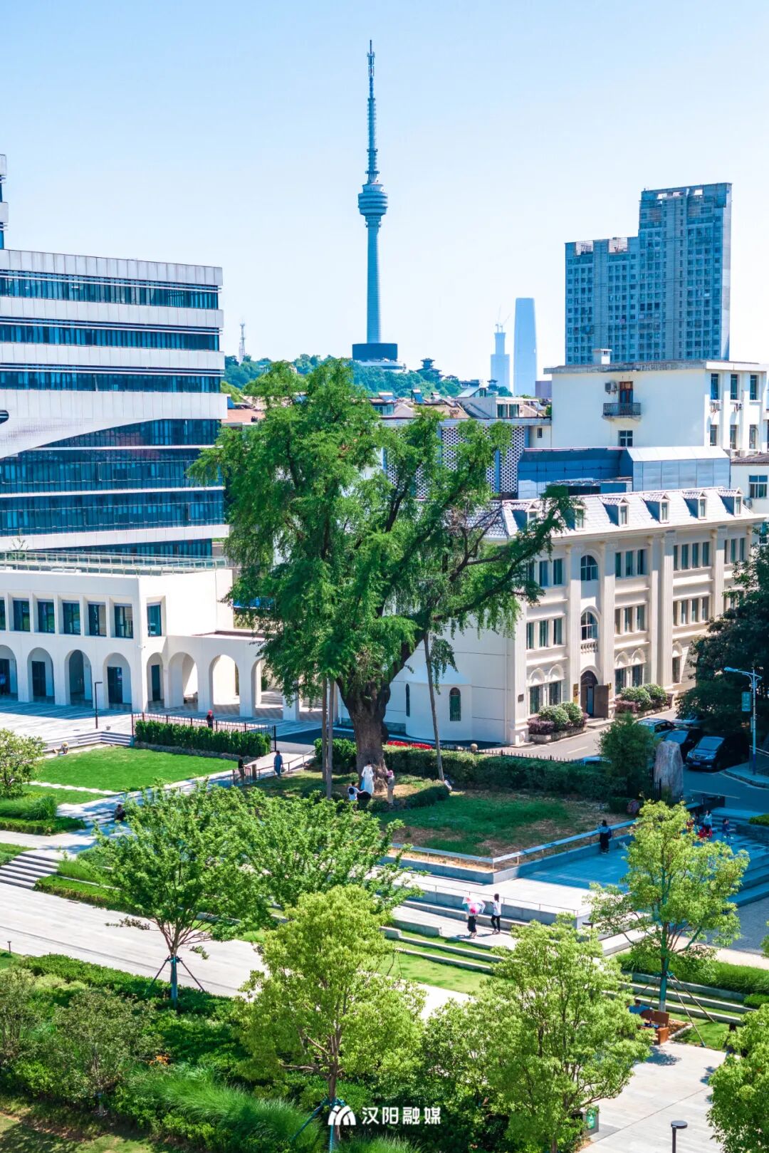 去年8月,汉阳树公园南园落成,汉阳树公园宣布整体开园,汉阳树迎来新邻居——“时光之环”景观节点处栽种的新生银杏,与其毗邻而居,古今对望,携手共赴下一场山海。