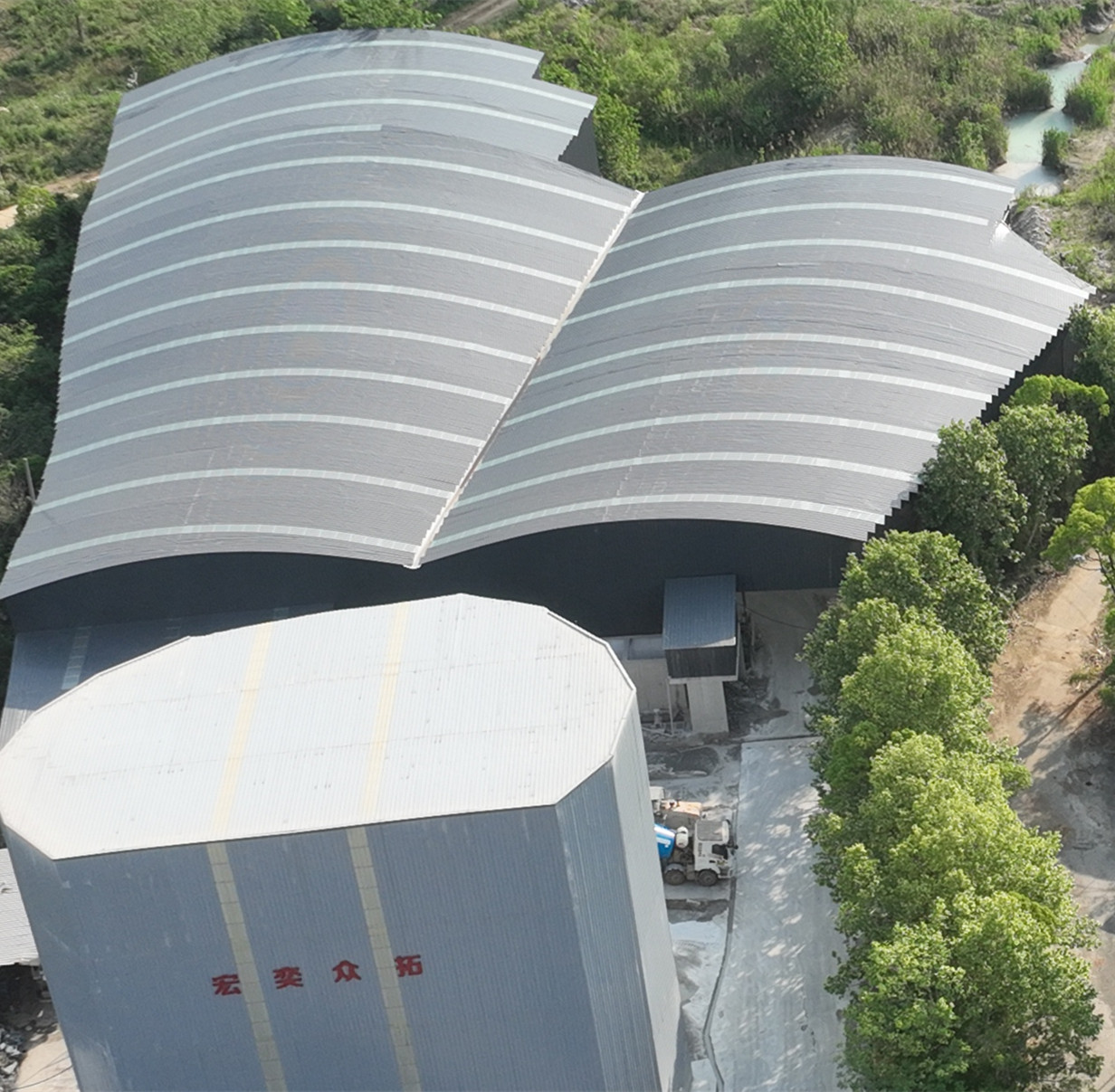汉阳区自然资源和城乡建设局还借助此次无人机航拍,对2024年环保督察“回头看”涉及的武汉宏奕众拓建筑材料公司预拌混凝土生产站点料仓封闭情况进行了检查,其料仓封闭的成果在无人机拍摄的加持下得到了更好的呈现。