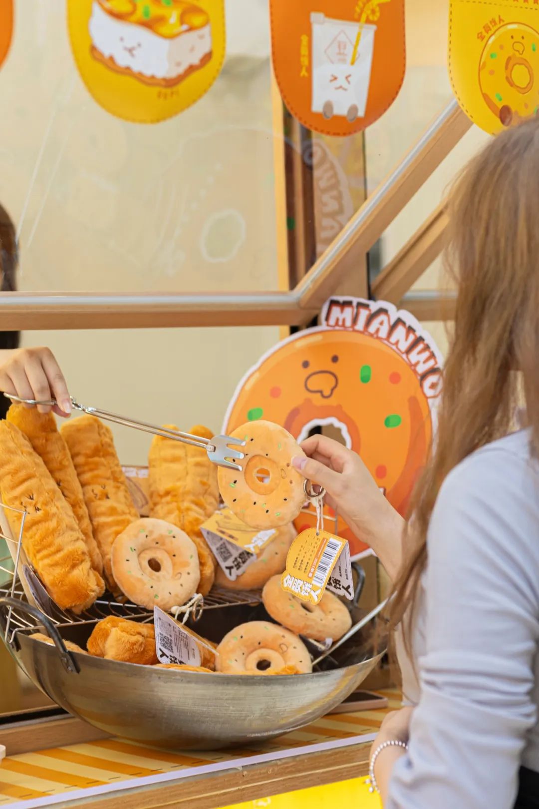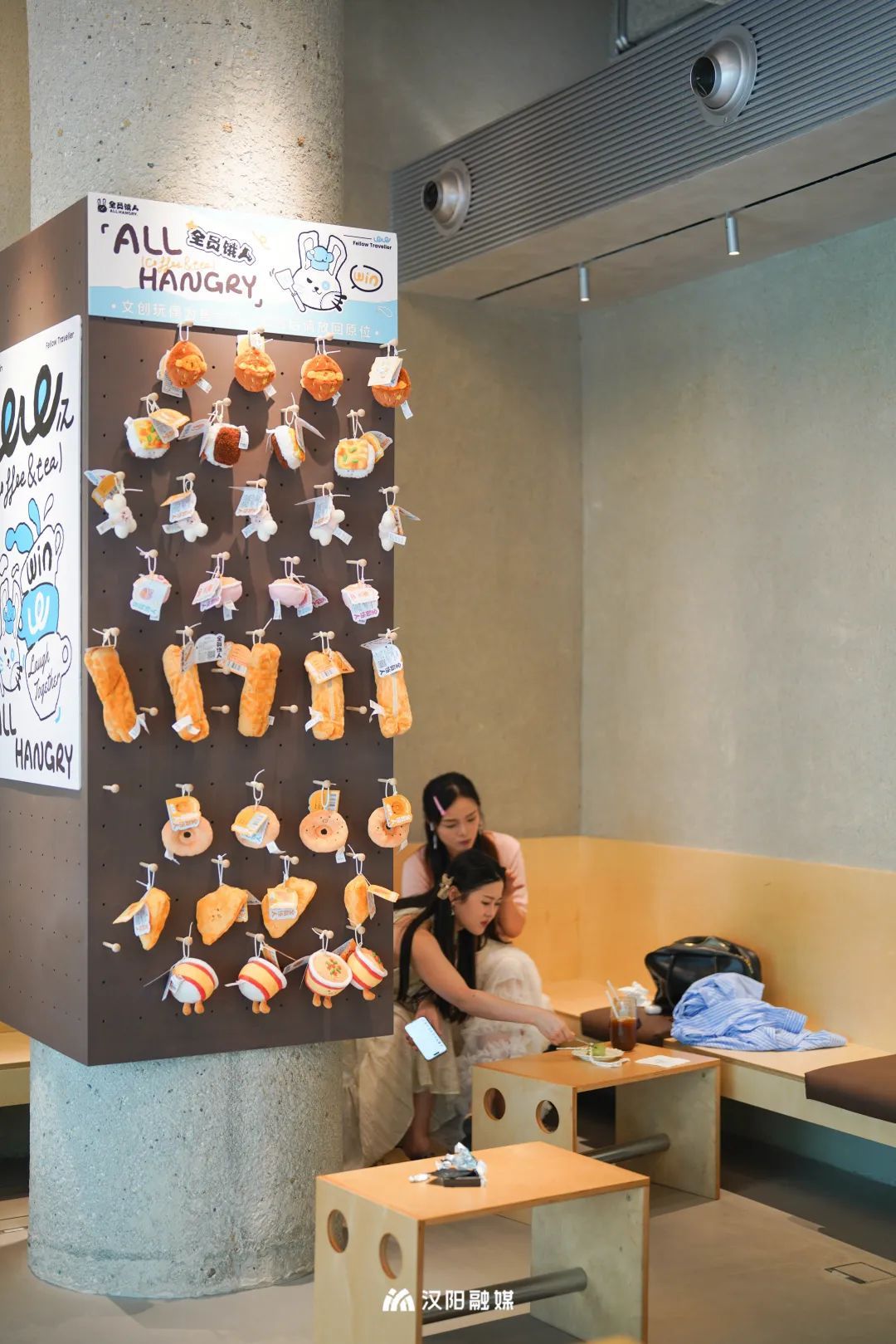“你看,这些就是我们的‘饿人’家族。” 游媛笑着指向店内一面引人注目的展示墙,只见形态各异、憨态可掬的玩偶错落有致地陈列其中:葱香四溢的豆皮、金黄酥脆的面窝油条、别具一格的樱花热干面……每一个玩偶都带着鲜明的武汉印记,凝结着浓浓的烟火气与年轻活力。