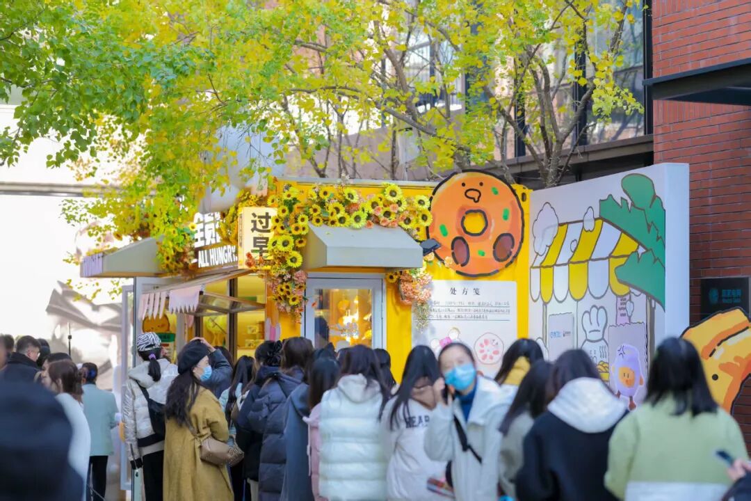 △“全员饿人”第一家文创店门口排起长队。