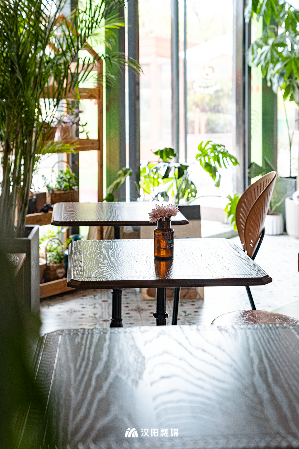 推门满眼绿色,木质桌椅配着绿植,像把江边的草坪搬进了店里。窗边座位是 “黄金位”,抬头就是鹦鹉洲大桥。