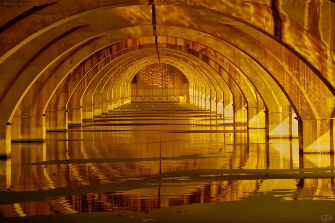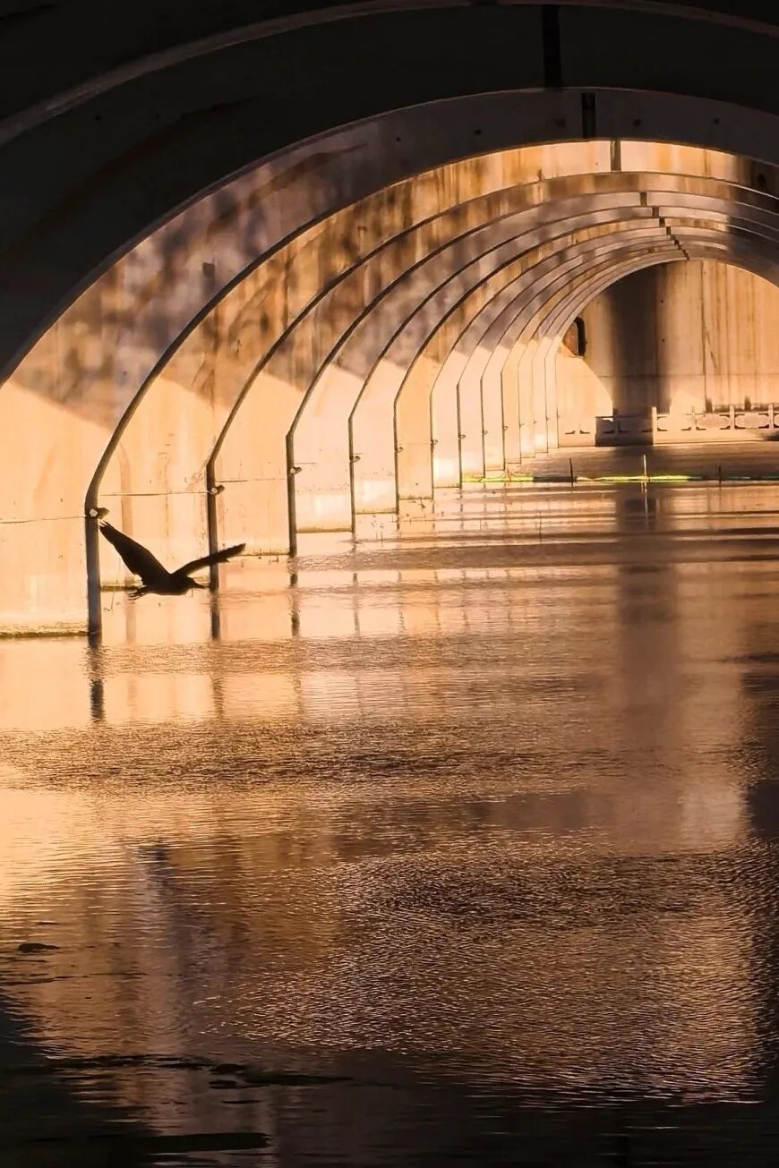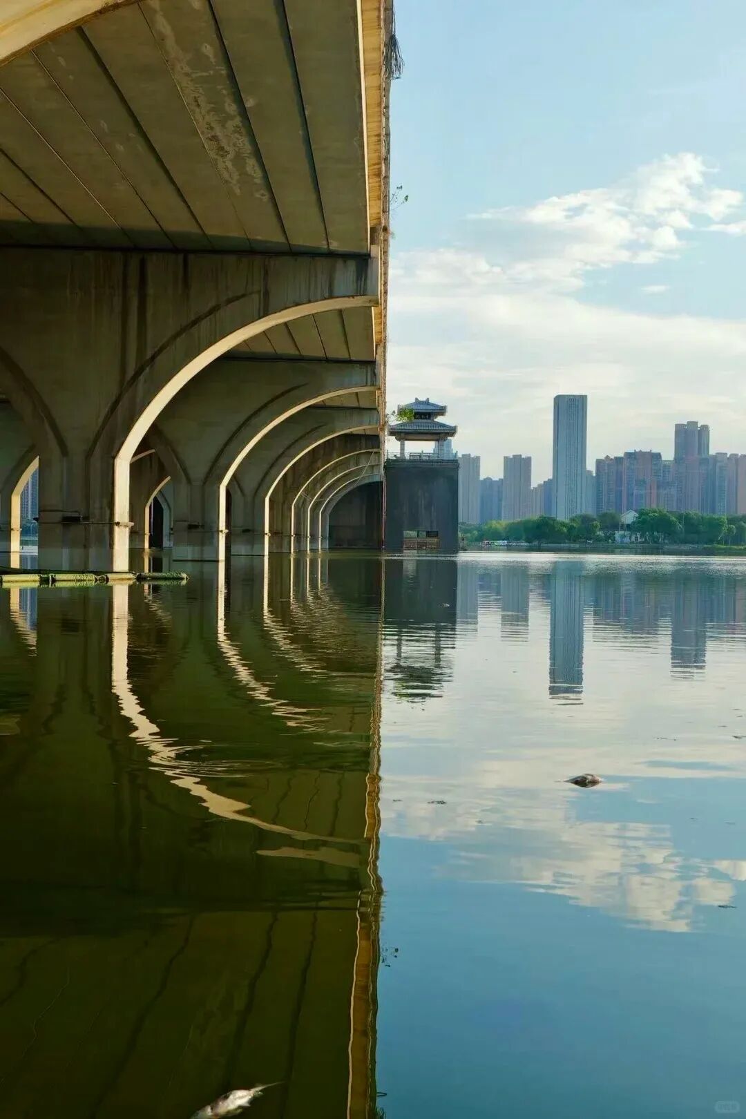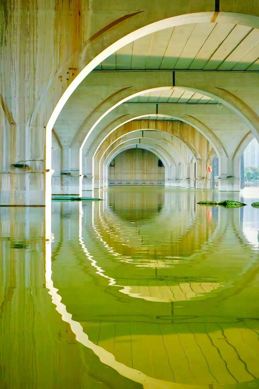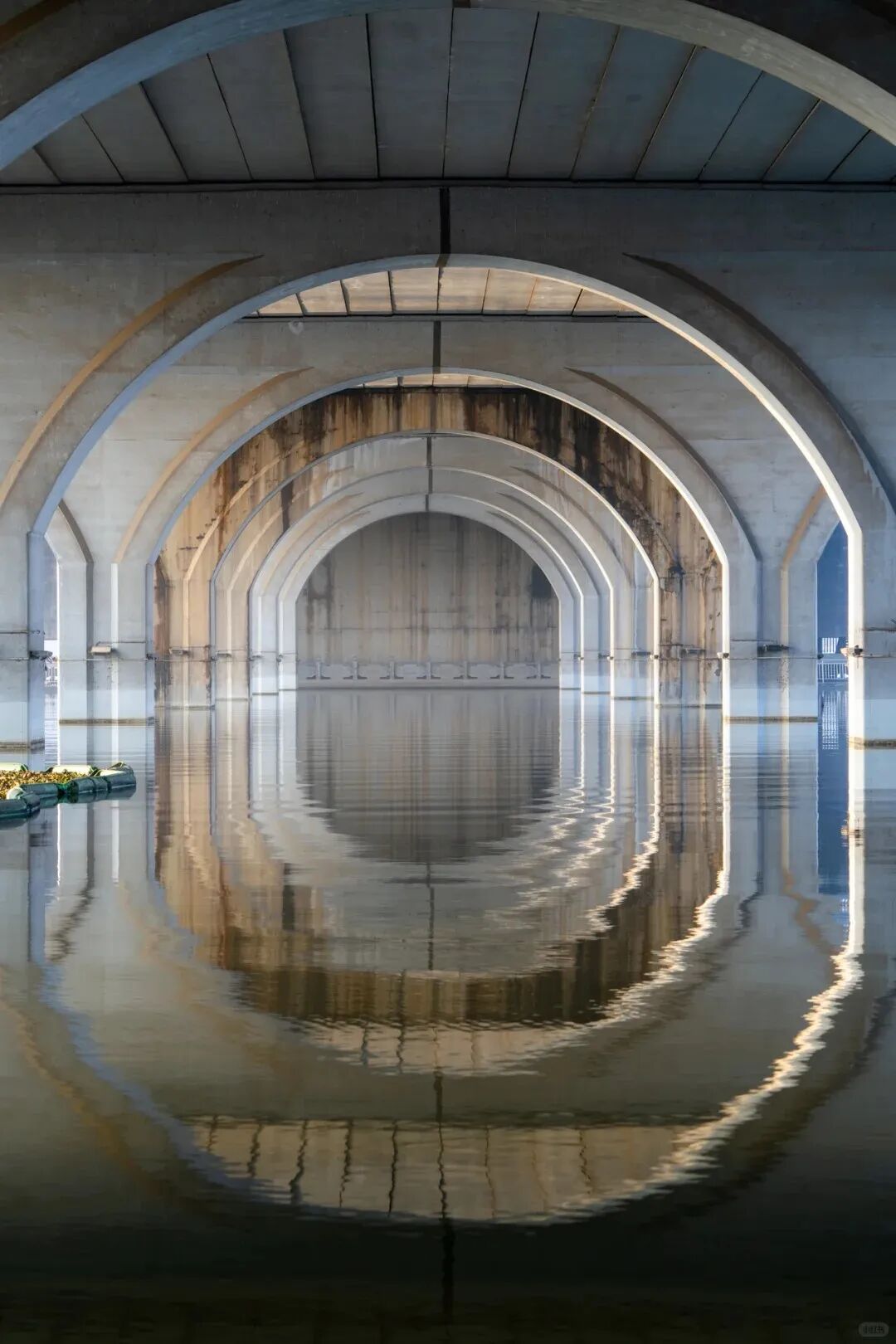 △在墨水湖公园一侧,拍墨水湖大桥桥洞,可拍出“时光隧道”全貌。(图源小红书用户@敏文书法)