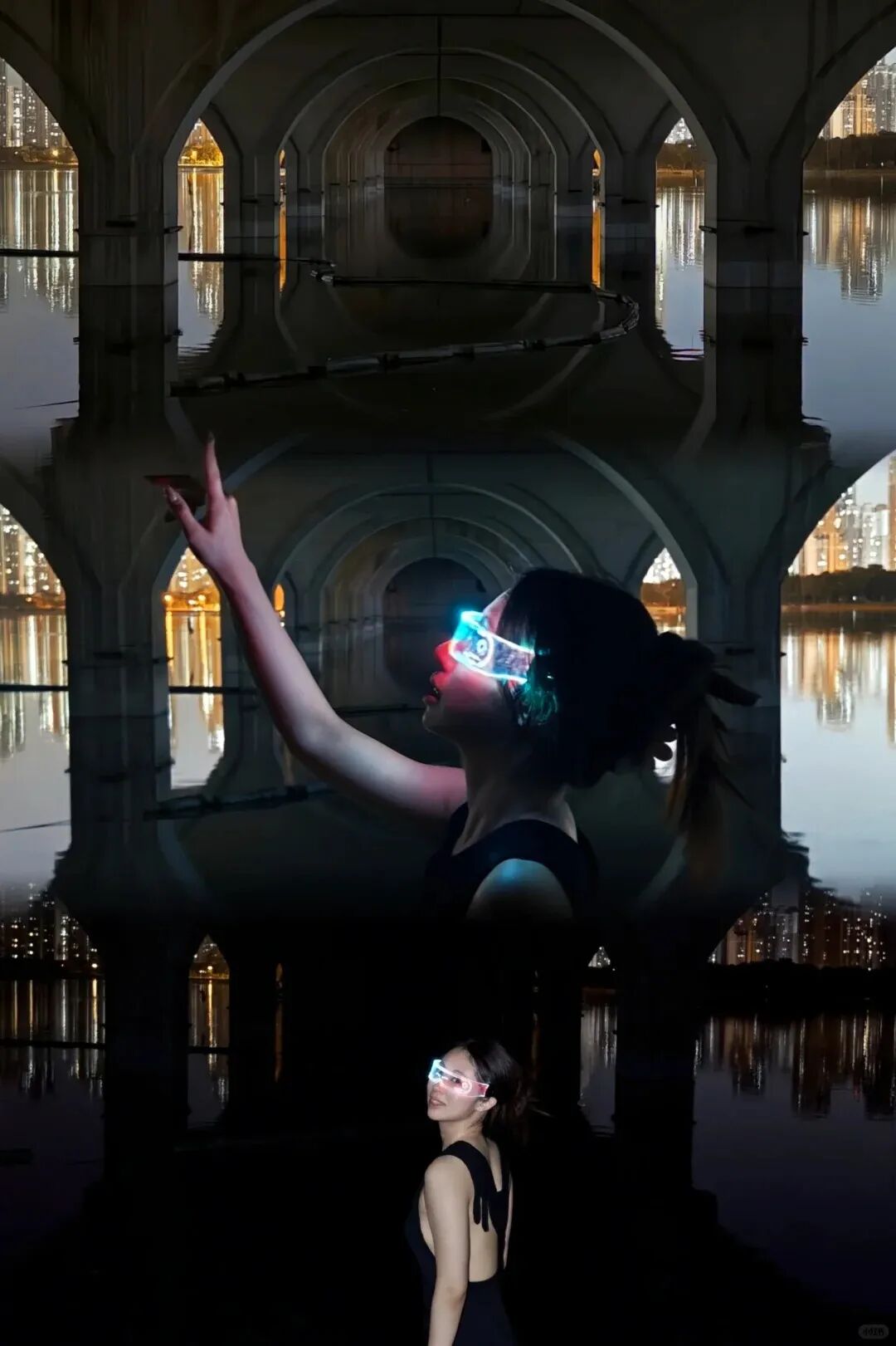 △图源小红书网友@江小蛮啊直言,照片拍于2024年,当时遇到墨水湖大桥夜间亮灯时段,拍摄的照片呈现出赛博朋克风格。