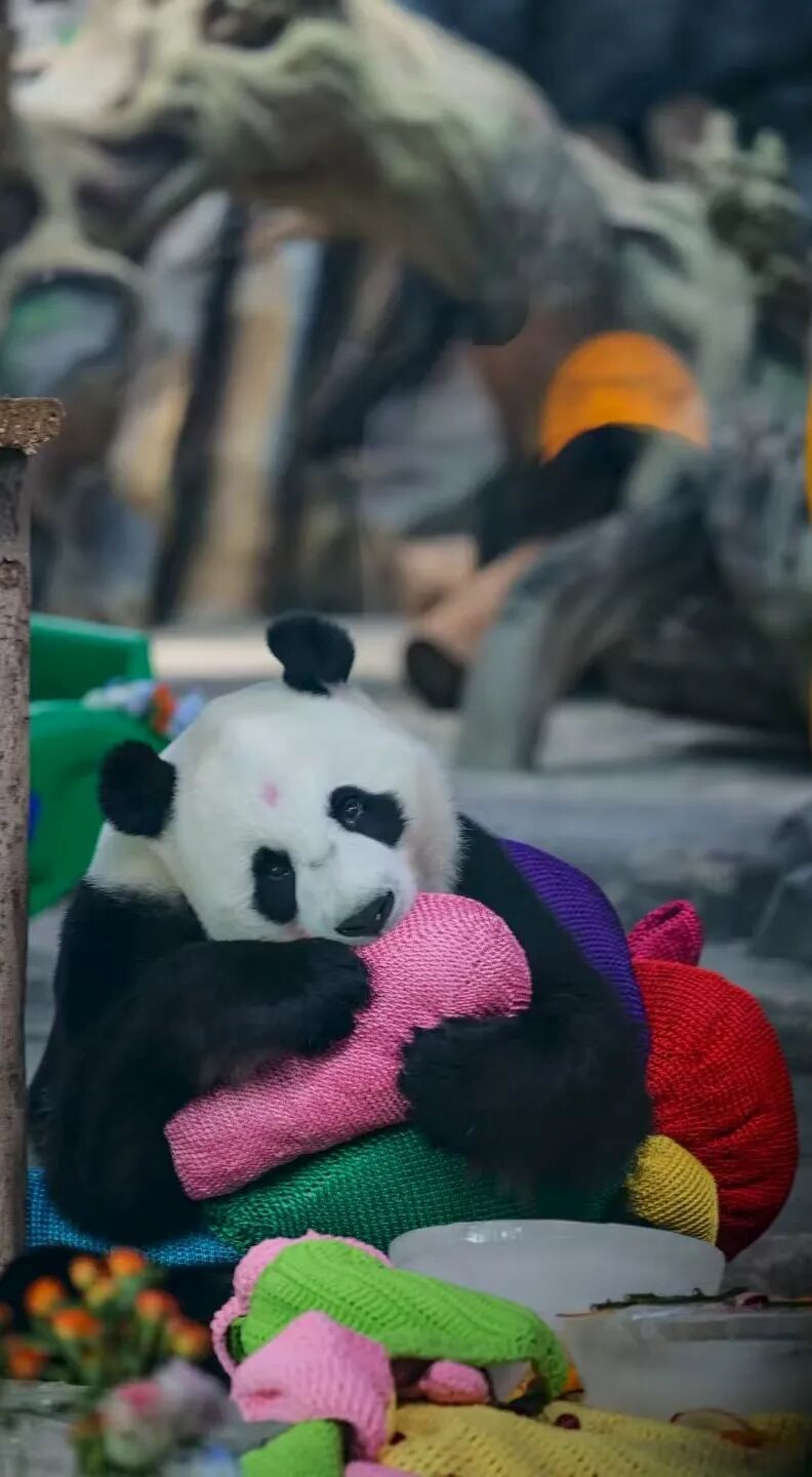 △左图为武汉动物园的大熊猫武林,右图为东西湖的阳光玫瑰葡萄。