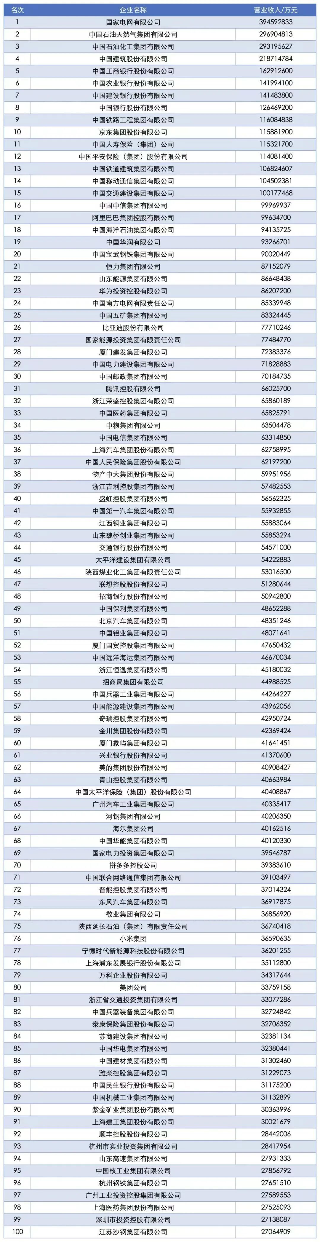 “2025中国企业500强”榜单