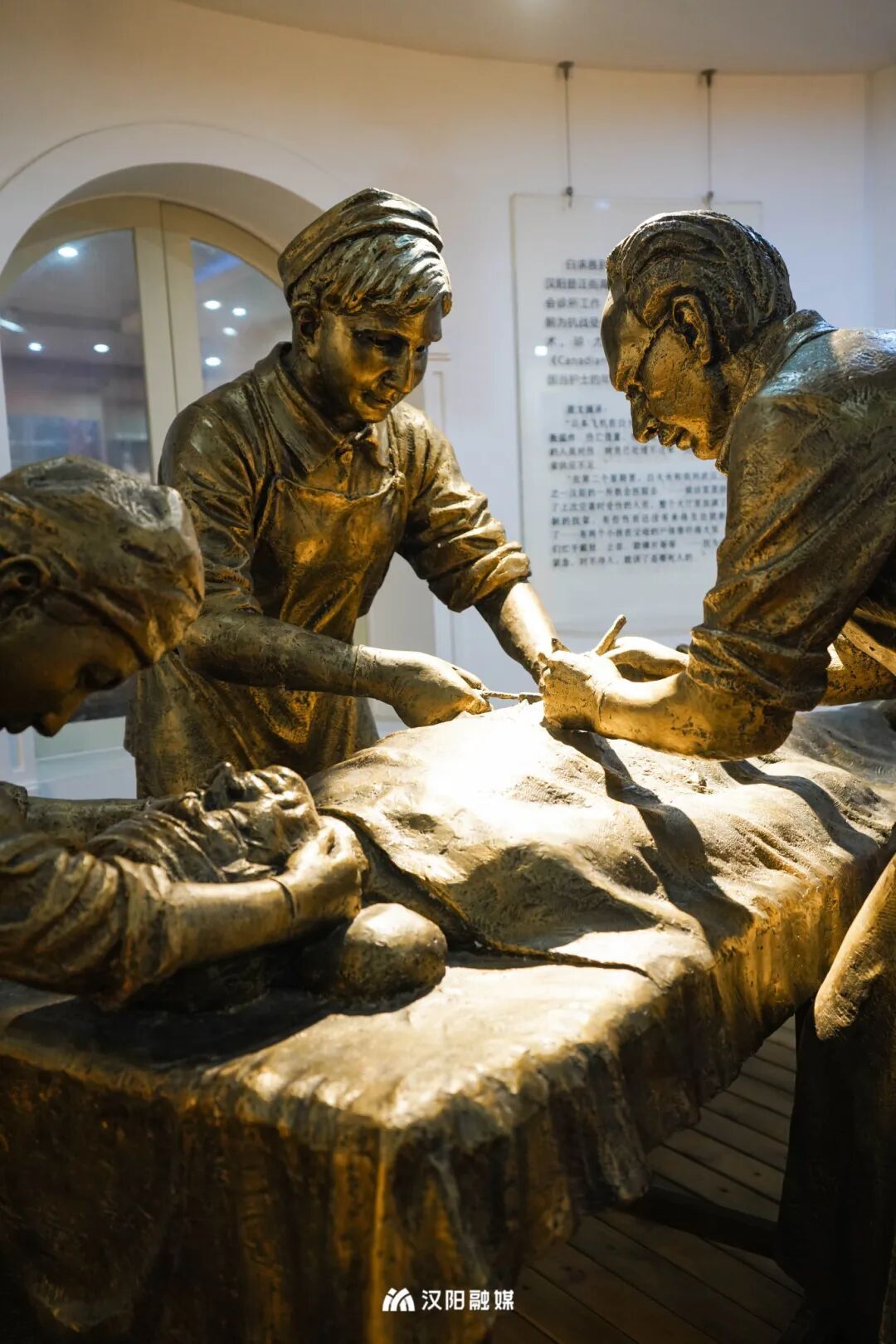 观赏完两个新馆,还可以去三楼的武汉白求恩纪念馆室内展厅看看。展厅以图文形式介绍了白求恩为中国抗战救死扶伤、牺牲自我的感人历程。馆内共有藏品191件,包括一本1949年出版的白求恩遗著《战伤治疗技术》。