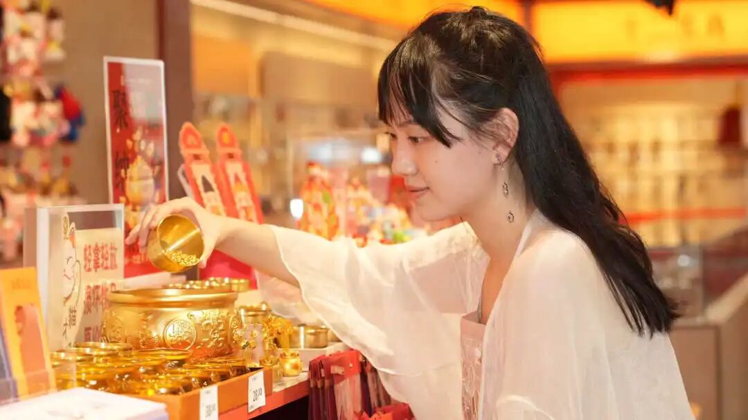 寓意"招财进宝"的金元宝造型吐司因独特造型与吉祥内涵,深受消费者喜爱;"归元文创馆"内限量发售的十二生肖护身符、非遗技艺制作的莲花香插等商品,更将传统祈福文化转化为可触摸、可带走的生活美学。